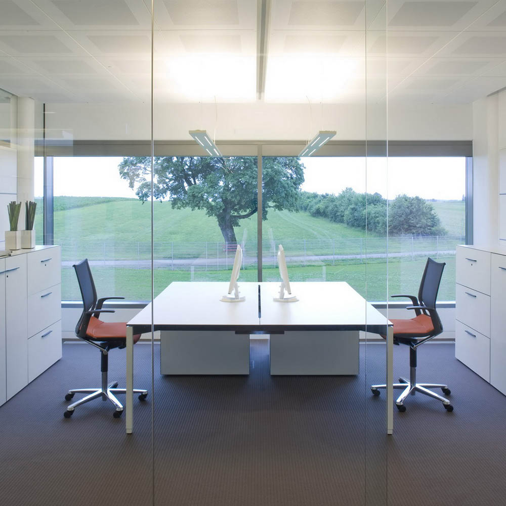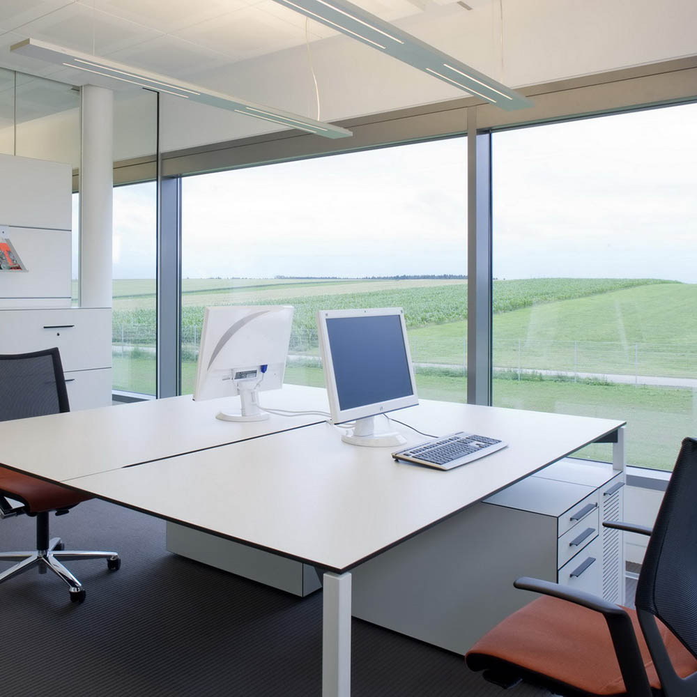 – Panel with Cable System enables neat cable management and clutter-free desks.